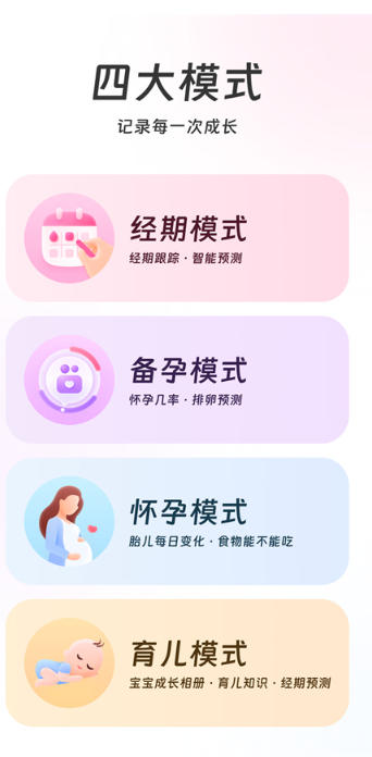 备孕模式:通过基础体温监测、排卵试纸智能识别(上传照片分析LH激素浓度)及宫颈黏液观察,生成每日受孕概率图谱,辅助科学备孕。